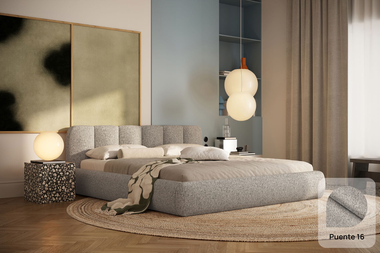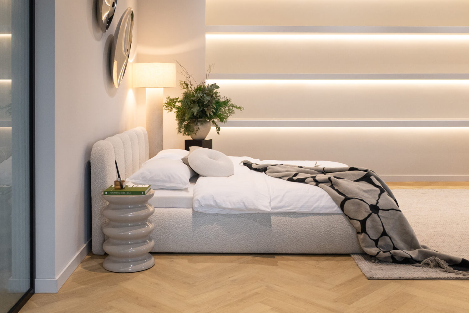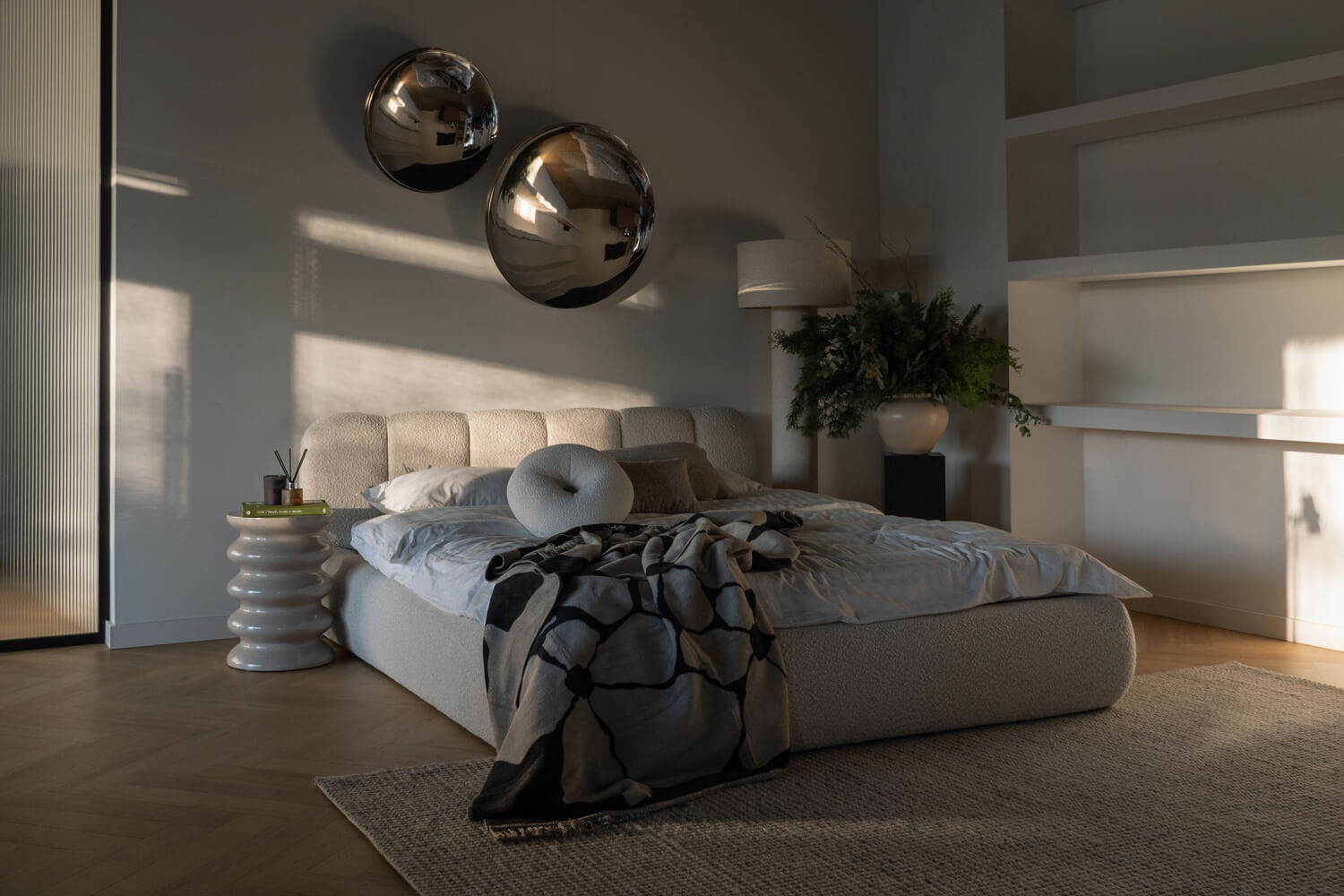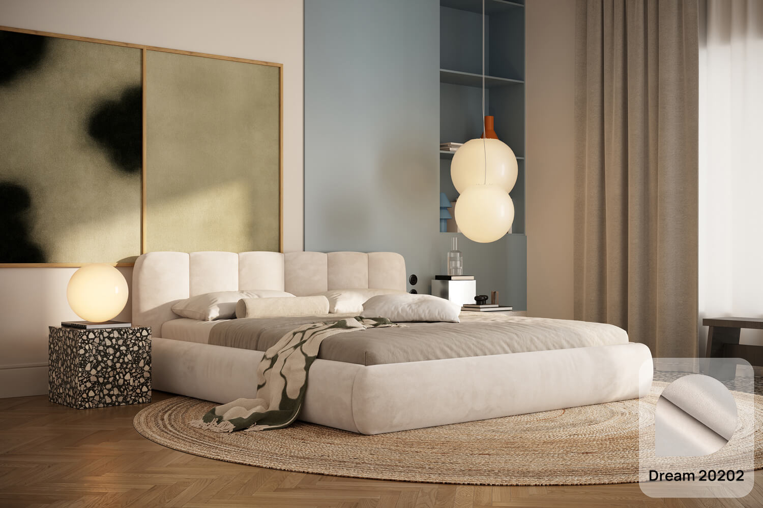Felicia od MyBed to łóżko, które już od pierwszego spojrzenia obiecuje wyjątkową wygodę i miękkość. Jego tapicerowany, delikatnie zaokrąglony, panelowy zagłówek (z kilku pionowych segmentów) przypomina duże, puszyste poduchy i tworzy przytulne oparcie idealne do wieczornego relaksu. Jasnobeżowa, welurowa tapicerka oraz niska, masywna rama z łagodnie zaokrąglonymi bokami sprawiają, że model ten świetnie odnajdzie się zarówno w nowoczesnych, jak i bardziej klasycznych aranżacjach. Lekka i harmonijna forma łóżka Felicia wnosi do sypialni atmosferę spokoju, ciepła i stylowego komfortu – to idealny wybór dla tych, którzy cenią estetykę połączoną z wygodą codziennego wypoczynku.
