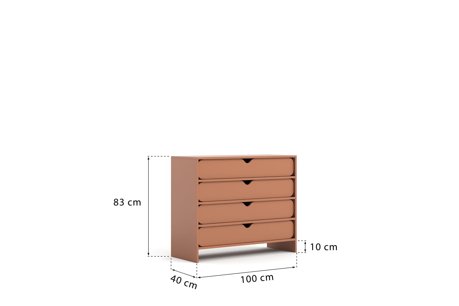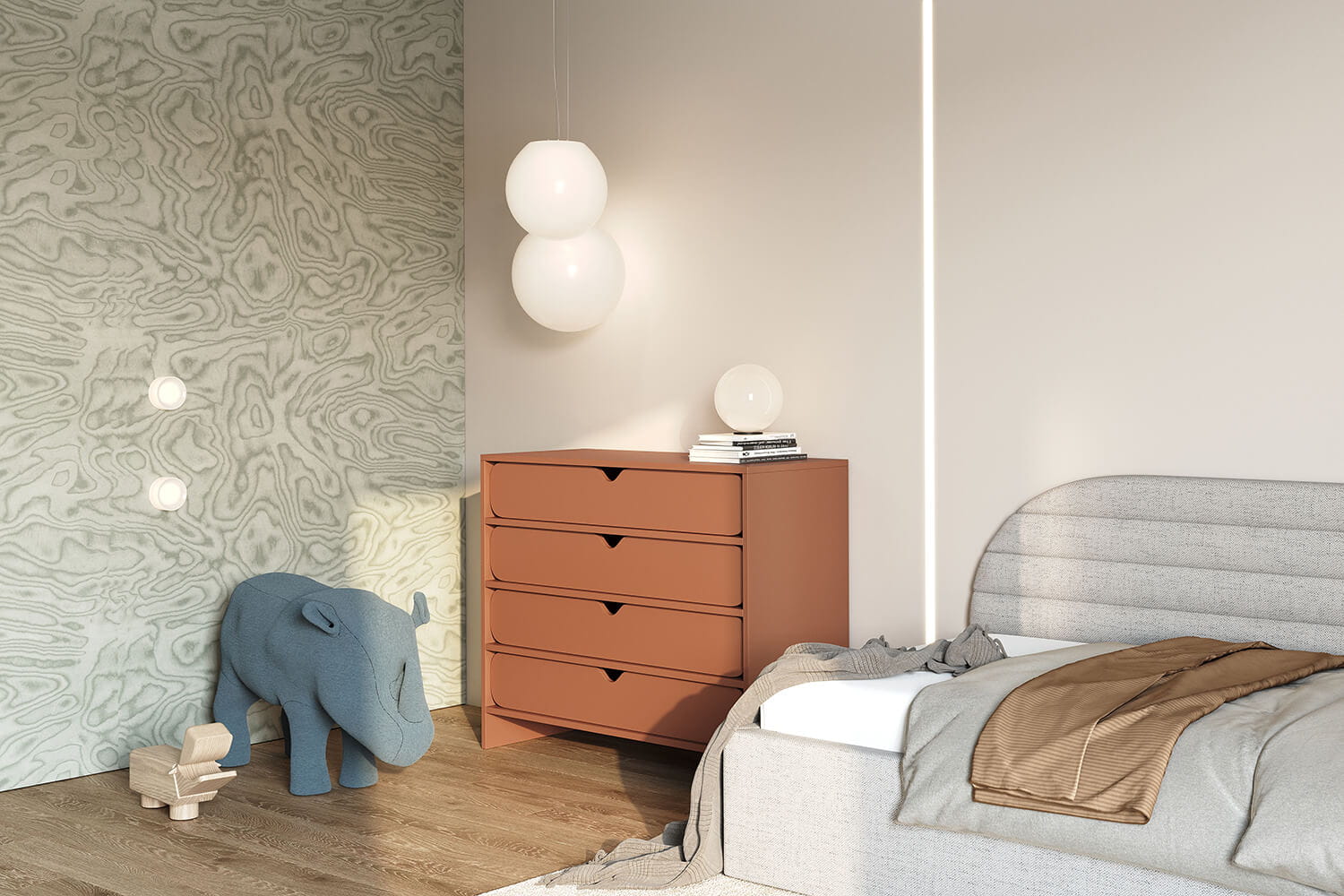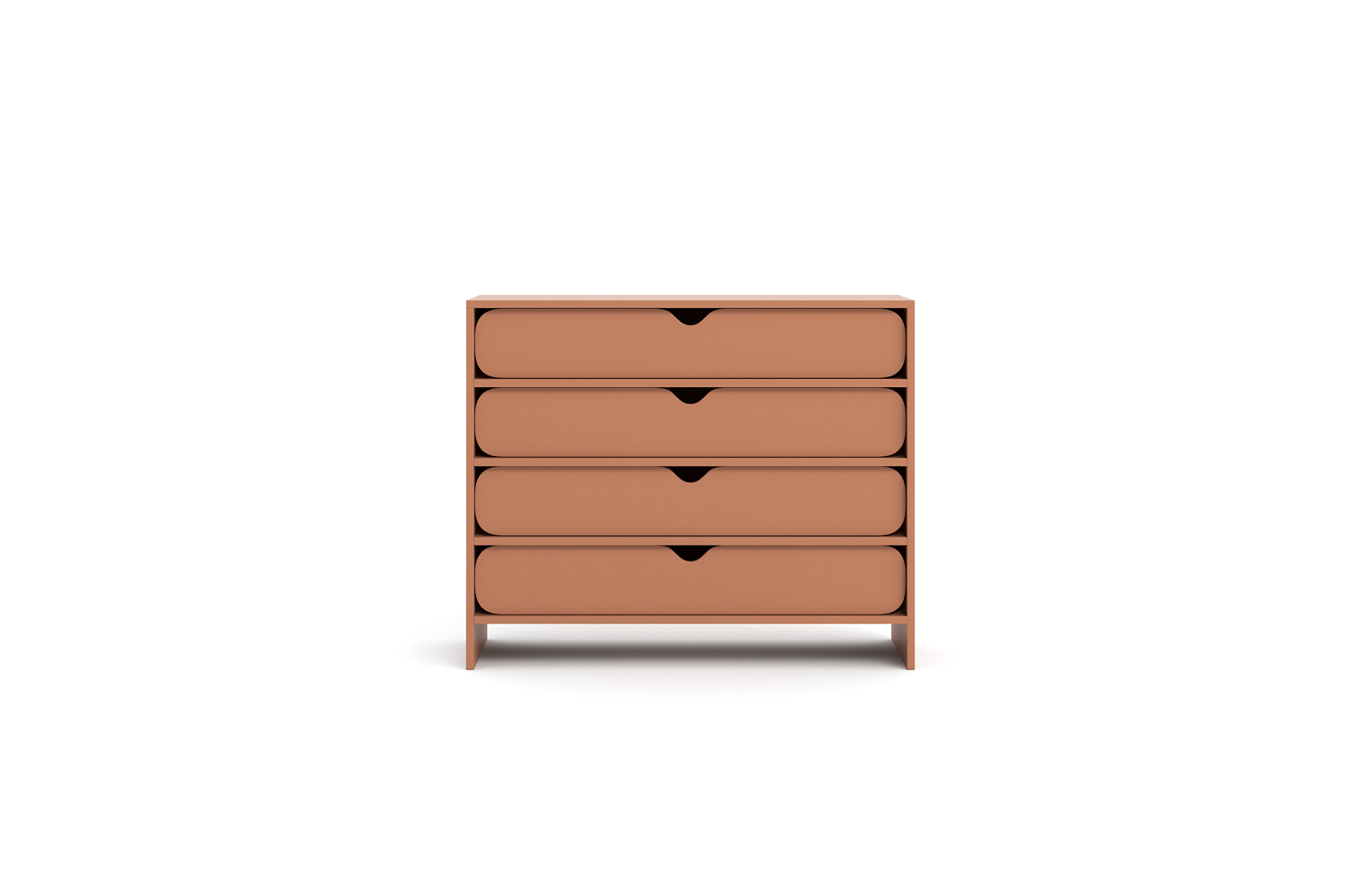 To element, który nadaje wnętrzu nowy wymiar. Jej geometryczna forma i ciepły, ceglany kolor przyciągają wzrok, a jednocześnie wprowadzają do przestrzeni spokój i harmonię. Ustawiona w sypialni, salonie czy przedpokoju, staje się funkcjonalnym centrum aranżacji i miejscem, gdzie estetyka spotyka się z praktycznością.